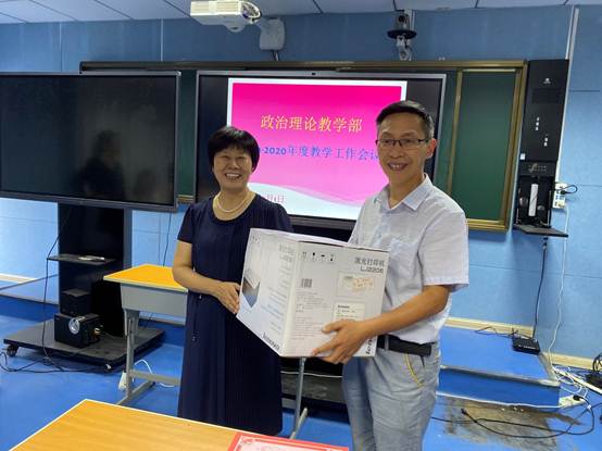 会上,冯晓青主任首先总结回顾了政教部2019-2020学年教学工作,对全体思政课教师过去一个学年取得的成绩给予肯定,希望全体思政课教师牢记习近平总书记对于思政课教师的嘱托,进一步做好“六要”“八个相统一”,做新时代的“四有”好老师。然后,冯晓青主任宣读了《南阳医专2020年度思政课教学技能大赛表彰决定》,并为一等奖获得者颁发证书和奖品,对获奖者表示祝贺,希望全体思政课教师加强理论学习讲好思政课。