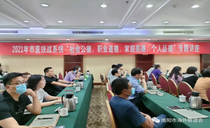 为全面加强市直统战系统干部职工道德建设,进一步提高道德水平,贯彻落实好2019年10月中共中央、国务院印发的《新时代公民道德建设实施纲要》,推动新时代全民道德素质和社会文明程度达到一个新高度。9月23日下午,市直统战系统举办“社会公德、职业道德、家庭美德、个人品德”专题讲座。政教部书冯晓青主任受邀为大家做题为“弘扬美好品德,构建尚德社会”专题讲座。
