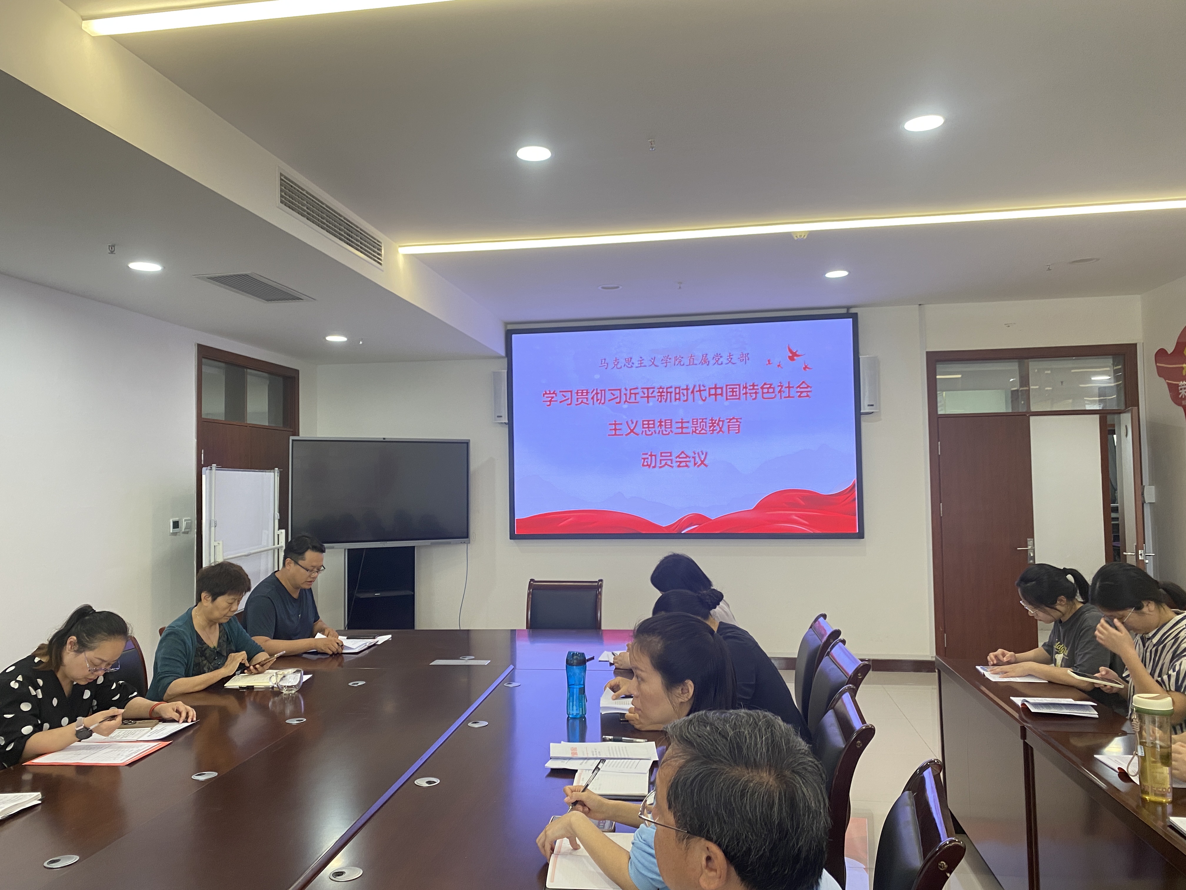 2023年9月13日下午,南阳医专召开学习贯彻习近平新时代中国特色社会主义思想主题教育工作会议,会后,9428cn太阳集团直属党支部紧抓部署落实,于4:30召开学习贯彻习近平新时代中国特色社会主义思想主题教育动员会,全体思政课教师参会。