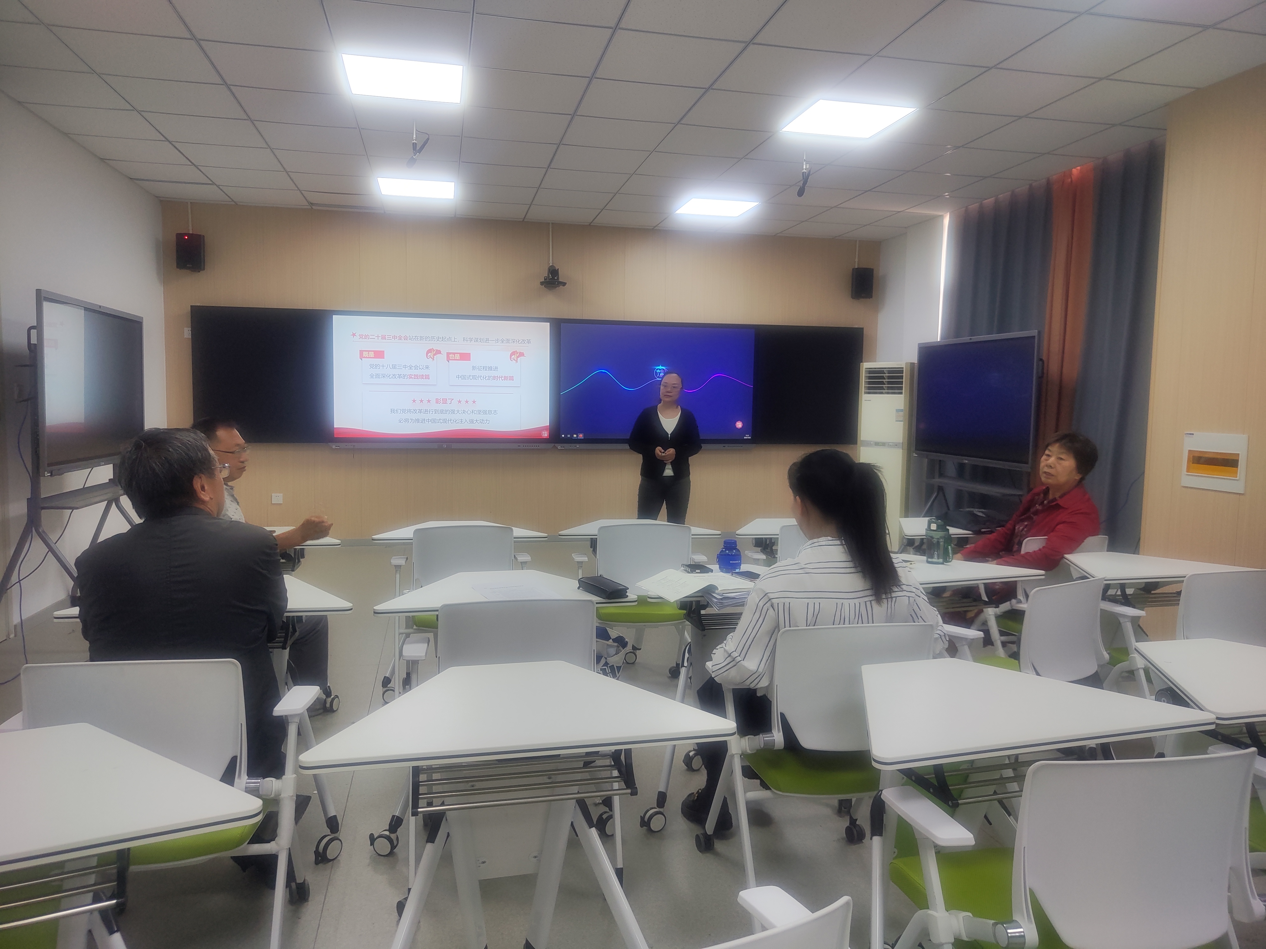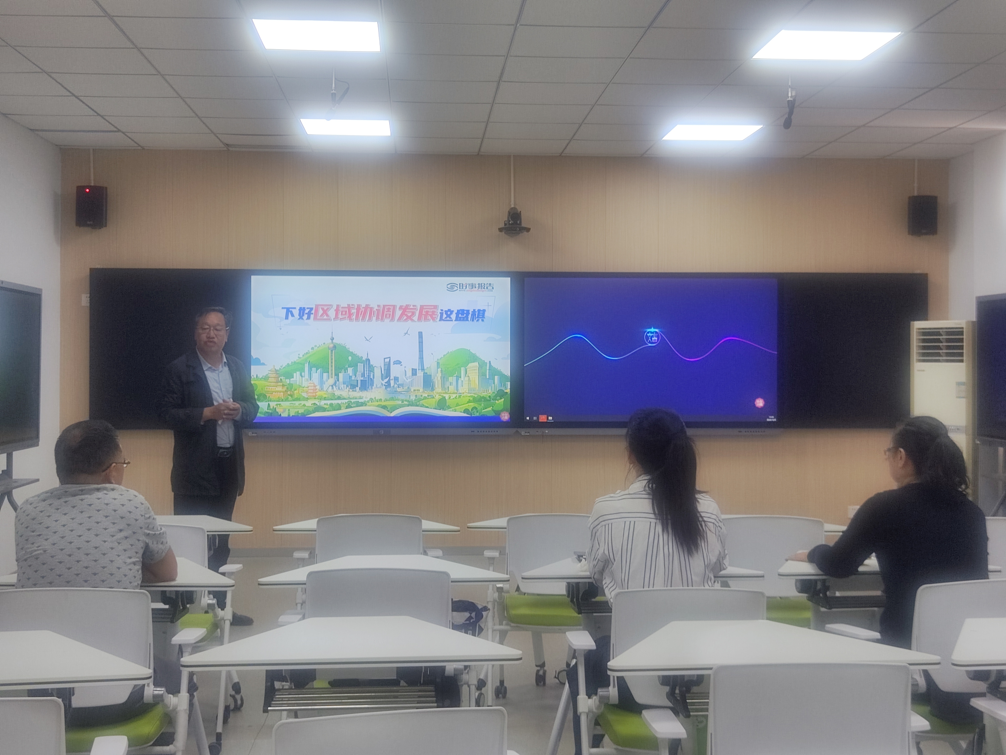 在《形势与政策》的磨课活动中,教师们对课程3个专题逐一进行教学研讨。教研室主任刘永仓率先进行教学展示,他选择了“下好区域协调发展这盘棋”作为教学内容,以其深厚的专业素养和丰富的教学经验,为老师们呈现了一堂内涵丰富《形势与政策》课。黄传钧、陈新萌和钱琎几位教师也各自选取了不同的专题,展现了各自独特的教学风采。几位教师运用讨论式、探究式、情境模拟等多种教学方法进行教学展示,将课程内容与实际生活相结合,通过生动的案例和时事热点,使大学生能够更加深入地理解课程内容,并引导他们关注国家大事,增强社会责任感。
