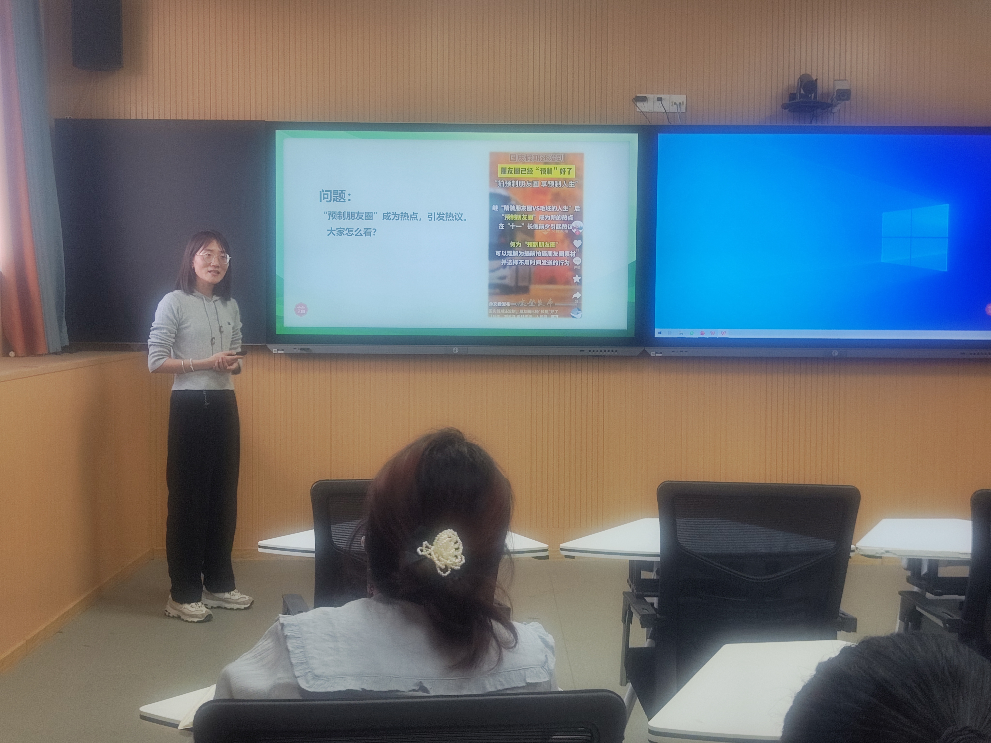 在《思想道德与法治》的磨课活动中,教师们重点聚焦专题“人生价值”开展教学研讨。张熠炜、张一帆和刘雅男三位教师通过讲一堂课的方式,不仅展示了不同教学设计和教学方法,还巧妙地将课程内容与实际生活相结合,通过生动的案例和形象的比喻,使学生们能够更加深入地理解课程内容。