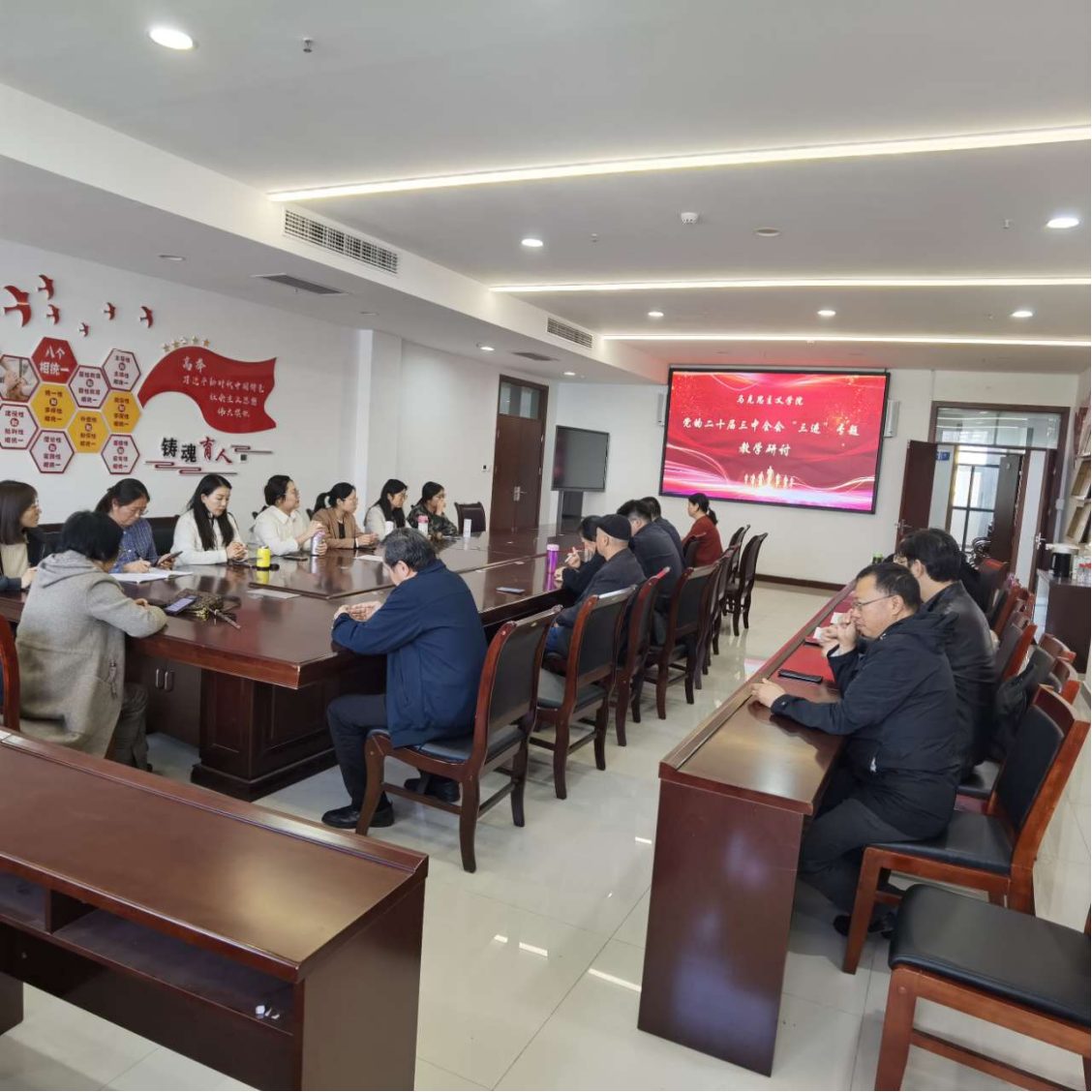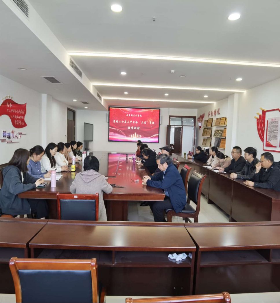 10月30日下午9428cn太阳集团召开集体备课,开展党的二十届三中全会“三进”专题教学研讨会。会议由“毛泽东思想与中国特色社会主义理论体系概论”教研室主任魏毅主持,全体思政课教师参加。