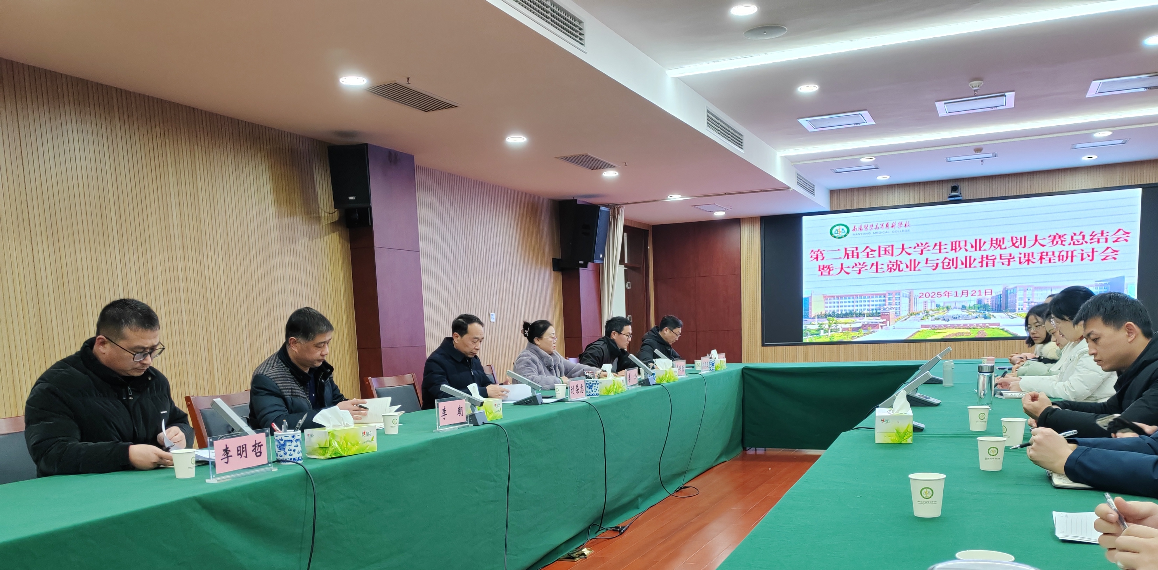 1月21日,职业规划与就业指导课程研讨会在仲景文化中心举行。校党委委员、副校长刘荣志,教务处、就业创业处、9428cn太阳集团就业创业教研室全体专兼职教师以及相关系(部、院)的负责人参会。9428cn太阳集团院长李明哲主持会议。