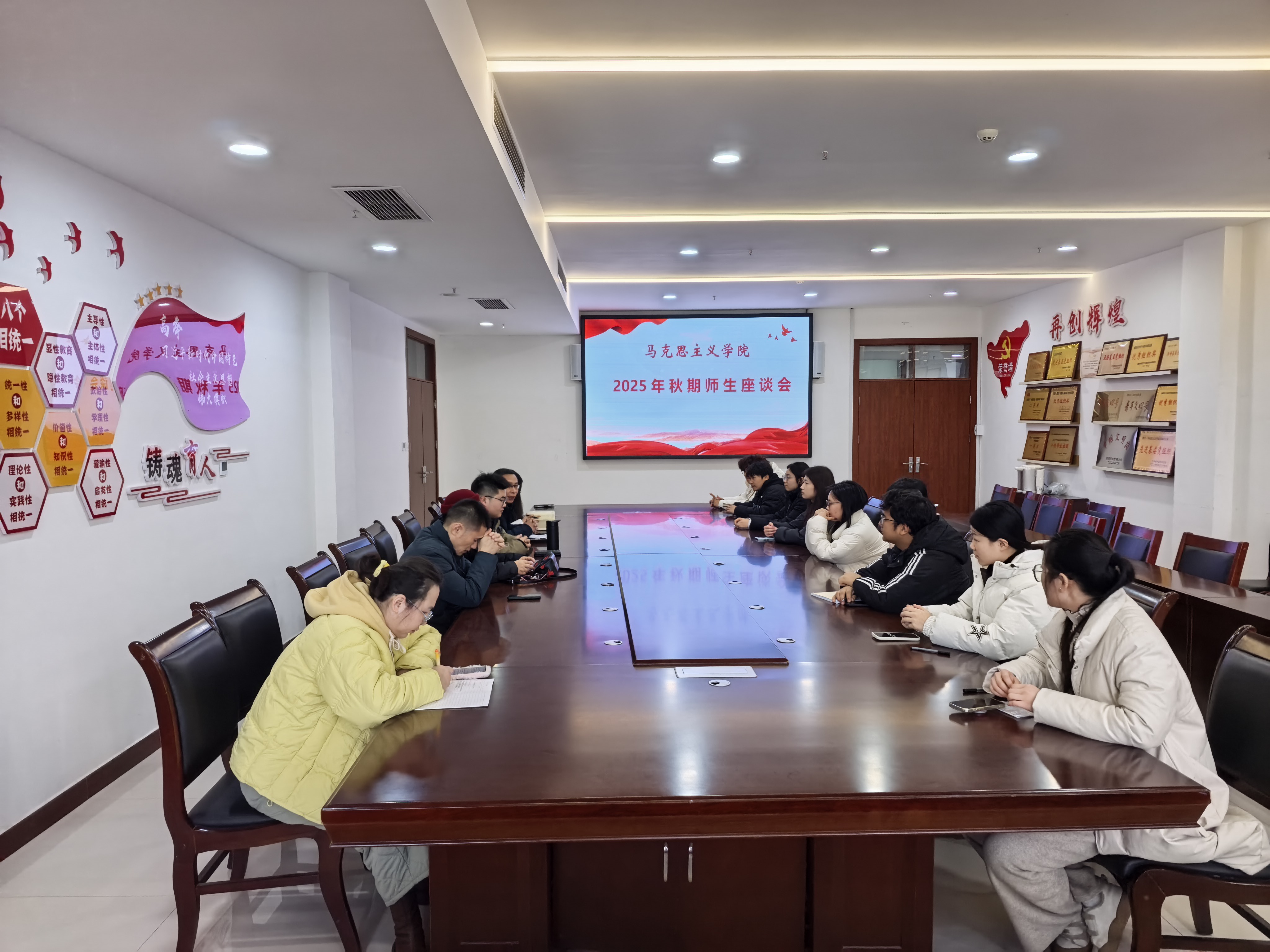 (文/9428cn太阳集团 王雨壮)2025年12月24日下午,9428cn太阳集团在五楼会议室组织召开师生交流座谈会。座谈会由《习近平新时代中国特色社会主义思想概论》教研室主任负责人主持,全体任课教师及10余名24级学生代表参加。