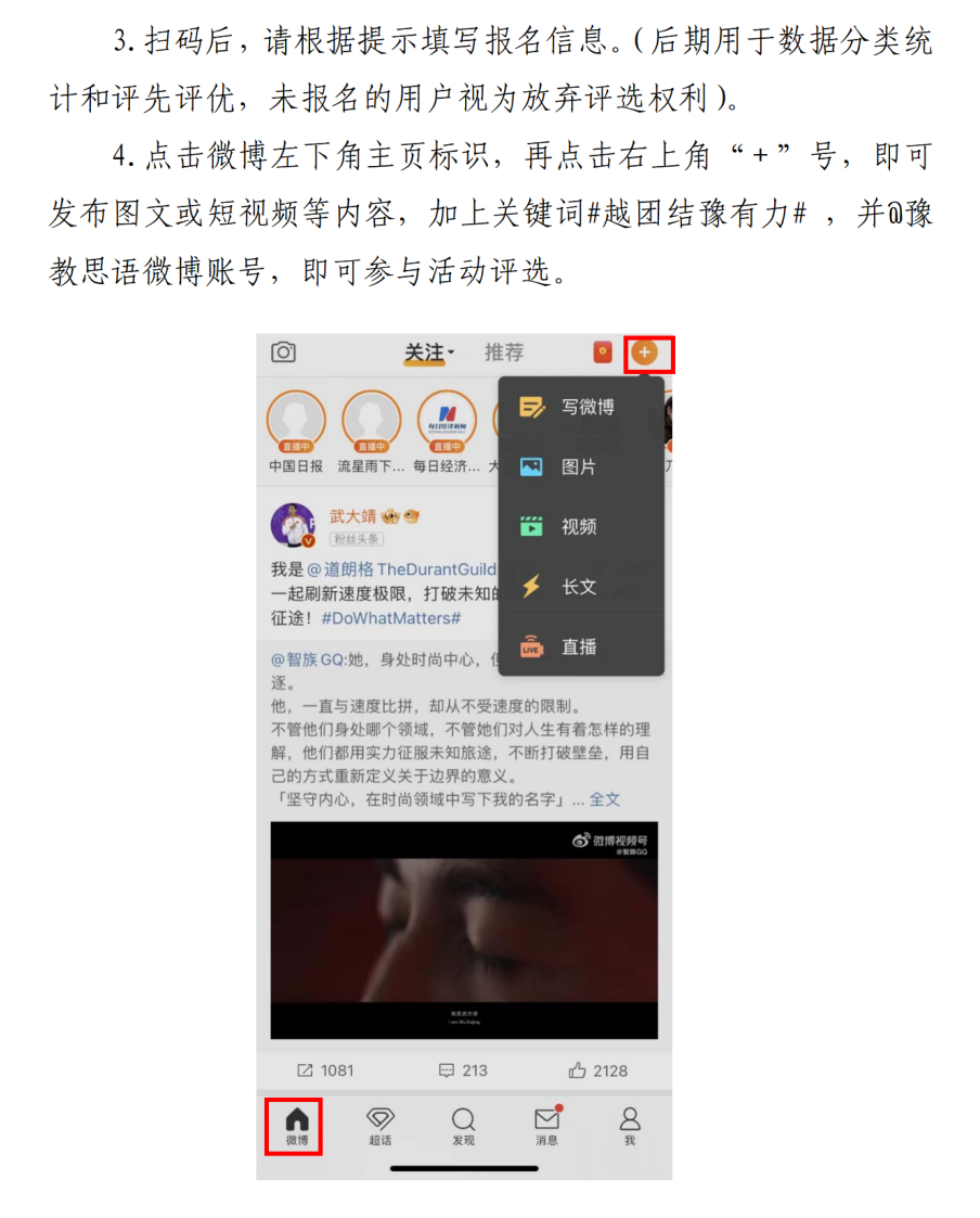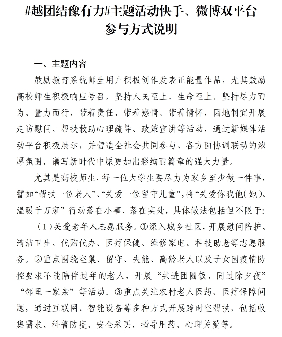 2.“越团结豫有力”短视频作品征集、微博话题参与