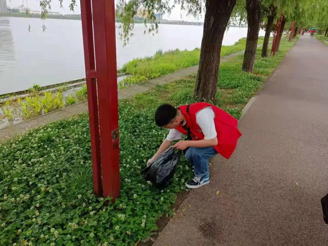 同学们戴好手套,拿好垃圾袋,沿着白河边,捡拾沿途草地上的垃圾,在确保安全的情况下,清理了河边的杂草及垃圾。同学们活跃在白河公园周围,用实际行动,维护公园的环境清洁卫生,为南阳建设生态文明城市助力。