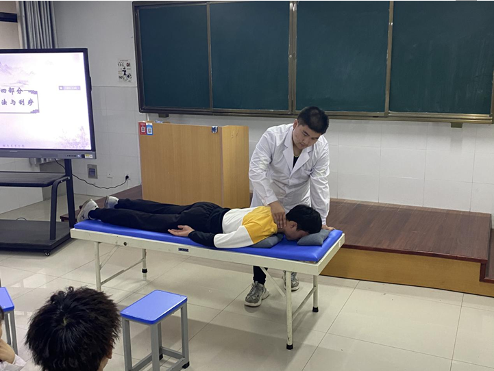 活动首先播放了习近平总书记12日在南阳考察,有关现阶段南阳的艾灸产业发展以及几位知名针灸推拿专家的视频,并向参加本次活动的同学讲解了针灸推拿的历史,并通过现场实操直接展示了相关手法技巧。