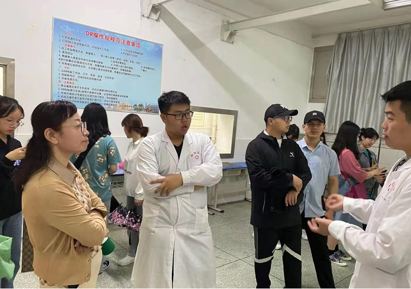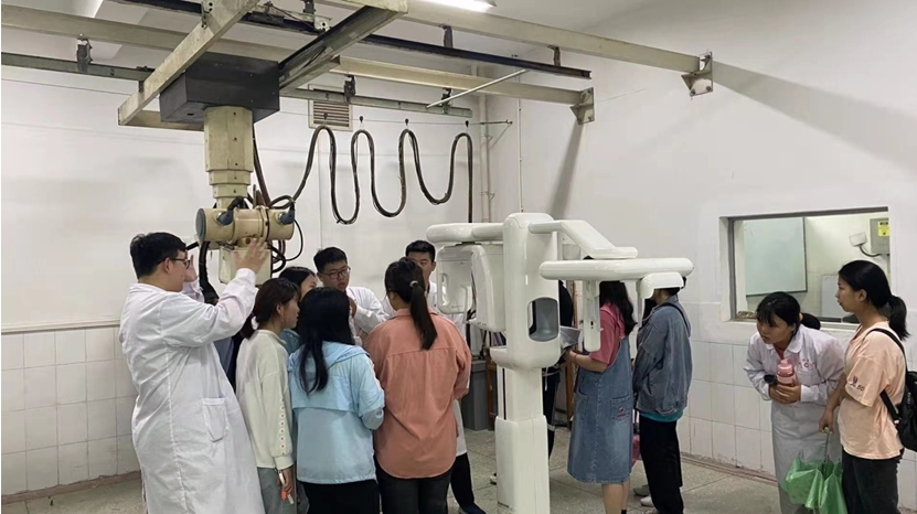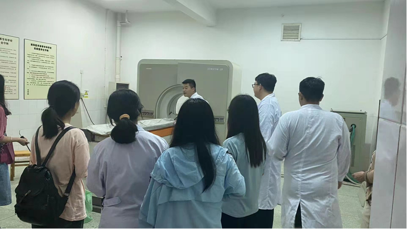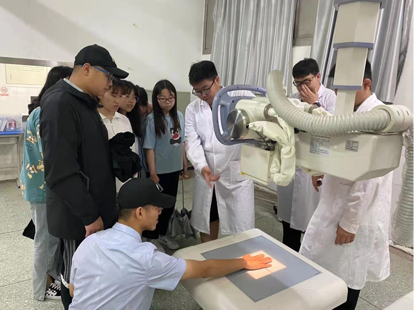 活动开始,医技系小组成员郑博为大家作了简单介绍,包括医学影像的基本内容和几种成像方式。接着小组成员带领大家一起前往主校区2号教学楼1楼实训室逐个参观,了解各种机器设备的构造、用途,及操作方法。