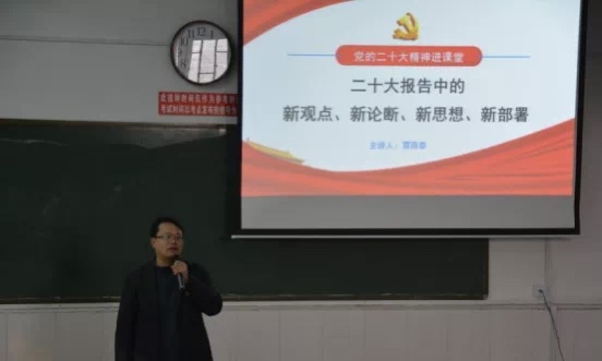 雷雨泰以《二十大报告中的新观点、新论断、新思想、新部署》为题,从九个问题展开讲解,将大会召开和二十大报告的重大意义、整体框架和大会主题、过去五年工作和新时代10年伟大变革等方面进行了生动的讲解。师生们认真聆听、仔细记录,用一阵阵热烈的掌声诠释宣讲现场热烈有序的氛围。