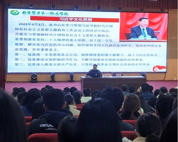 郭遂成教授以《深刻领悟习近平文化思想不负群众的生命重托》为题,围绕“做与文化相适应的医者、赢在责任心 胜在执行力、学有所悟 悟应笃行 行必持恒”三个方面,以自己的工作经验和学习习近平文化思想的亲身体会,讲授如何通过学习习近平文化思想落实主题教育的工作任务。讲座主题鲜明、思想深刻、内涵丰富、深入浅出、引人入胜,具有很强的思想性、理论性和指导性,为我院教师学深悟透做实习近平文化思想上了一堂高质量的思想政治专题辅导课。