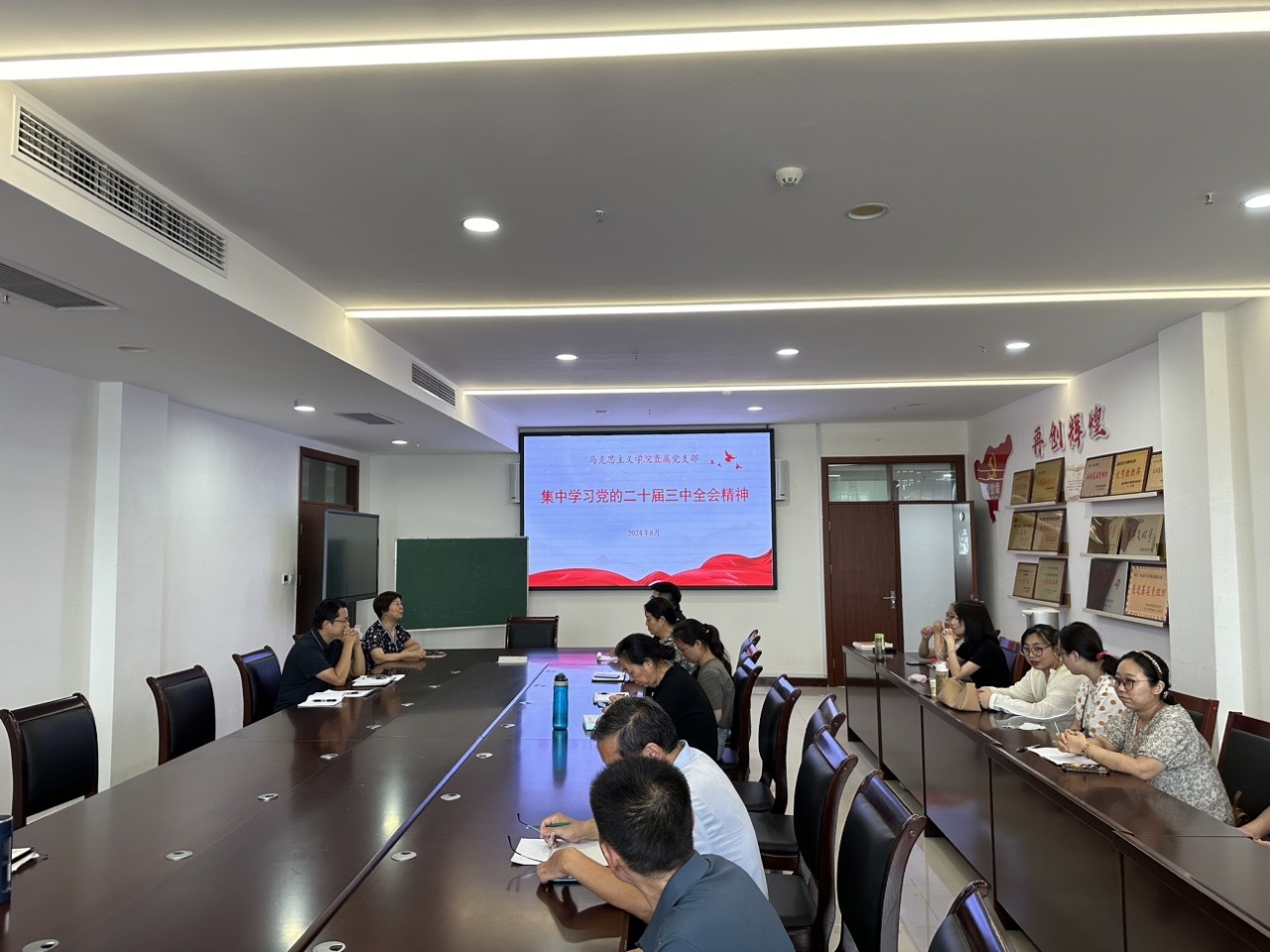 8月28日下午三点,9428cn太阳集团在仲景文化中心520会议室召开支部大会,深入学习贯彻党的二十届三中全会《中共中央关于进一步全面深化改革、推进中国式现代化的决定》精神。会议由9428cn太阳集团院长冯晓青领学,学院副书记雷雨泰主持,全体党员参加了本次学习。