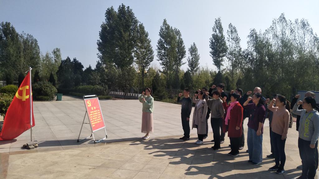 活动在政教部直属党支部书记冯晓青带领下,先由钱琎老师向大家讲述了“红二十五军鏖战独树镇:英雄红军铸就长征传奇”事迹,实地学习了我党历史上这一经典战例,大家深刻体会了中国共产党坚定革命事业必然胜利的革命精神、为了革命胜利不惜付出一切的献身精神以及顾全大局、紧密团结的爱国精神。随后大家缓步走向庄重肃立碑前鞠躬致意,伫立碑座前专注凝看“鏖战独树镇”碑记。一行行凝练厚重的碑文,将大家带回历史深处的峥嵘岁月,走进了红二十五军长征殊死鏖战的昨天。树立在碑前,由陈新萌老师带领大家,重温入党誓词,坚定理想信念。参与此次活动的教师们纷纷表示:聆听了鏖战独树镇的介绍,心灵受到深深震撼。红军将士崇高的信仰、不屈不挠的精神,激励着我们不忘初心,走好新时代的长征路。