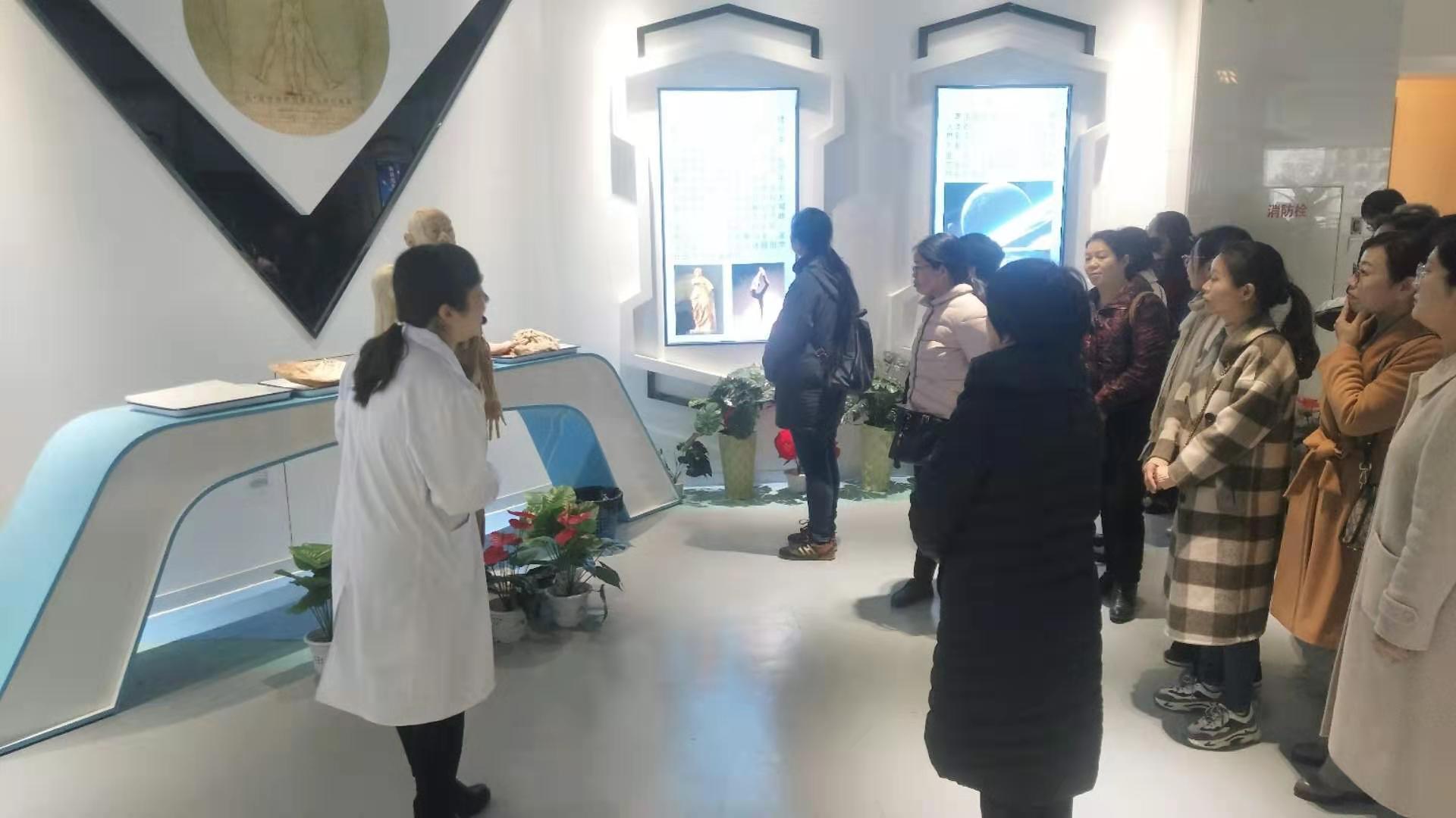 政教部直属党支部首先组织全体党员教师深入我校人体生命科学馆进行参观学习。在基础部宫宝老师的细心解说下,冯晓青主任和党员教师们一一参观了正常解剖标本厅、病理解剖标本厅、寄生虫标本厅和传染病艾滋病标本厅等一主三副四个大厅,深切感受到对生命的敬畏、对医学的敬仰和对生命守护者的敬佩,感悟到我校在医药文化发展道路上留下的一串串坚实的脚印,以及打造全国一流的人体生命科学馆的不易,仲景学人数十年来不懈追求的艰辛,不忘初心、方得始终。