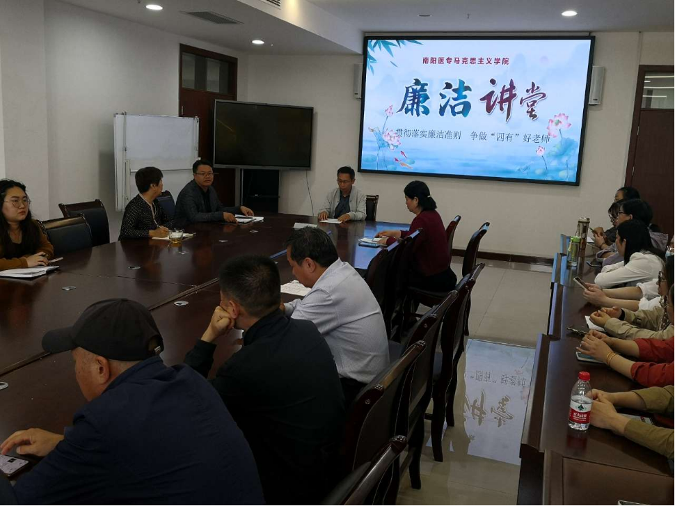 为深入推进我校清廉示范校创建工作,高质量开展廉洁文化教育活动,不断推动学习贯彻习近平新时代中国特色社会主义思想主题教育走深走实,贯彻落实好校纪委《关于开展廉洁教育活动月的通知》要求,10月18日下午,9428cn太阳集团直属党支部组织全体教师在院会议室开展廉洁讲堂专题讲座活动,马院石保山副教授主讲,冯晓青院长主持。