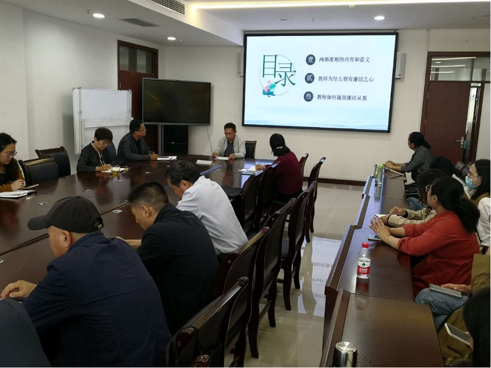 石保山以“贯彻落实清廉准则 争做四有好老师”为题,从两部准则的内容和意义、教师为什么要有廉洁之心、教师如何做到廉洁从教等三个部分,为大家深入解读了《中国共产党廉洁自律准则》《新时代高校教师职业行为十项准则》和习近平总书记在学校思想政治理论课教师座谈会上对广大思政课教师提出的“六项要求”,指出广大思政课教师要不断加强廉洁自律教育,提高新形势下党风廉政和师德师风教育的针对性和实效性,按照学校党风廉政和师德师风教育活动的安排,筑牢廉洁自律底线防线,争做新时代“四有”“六要”好教师。