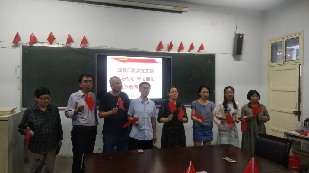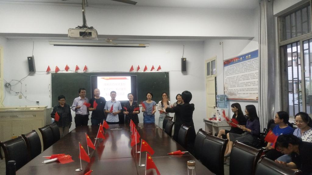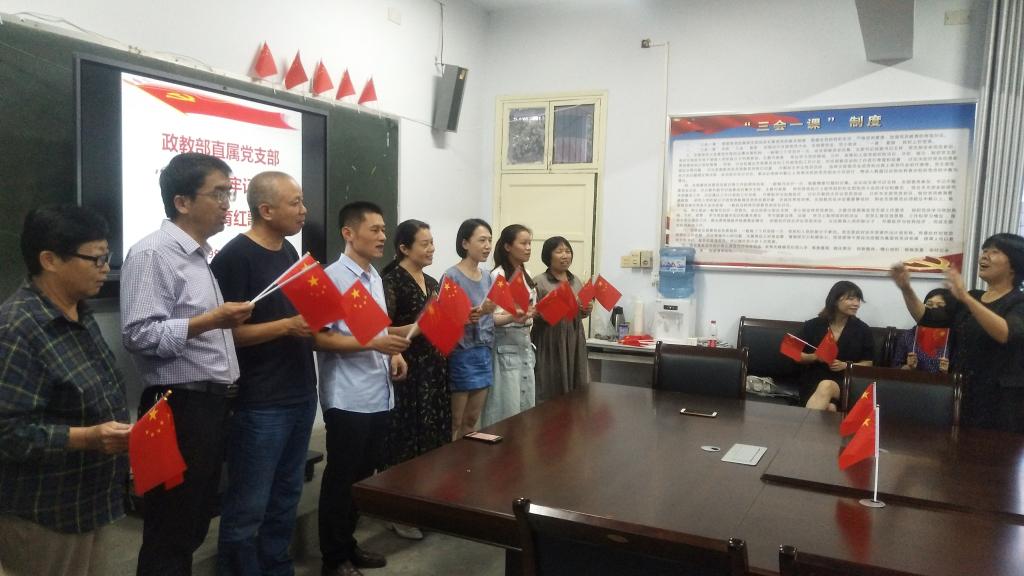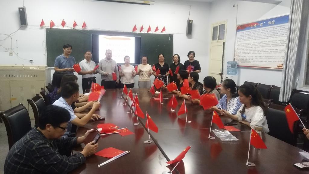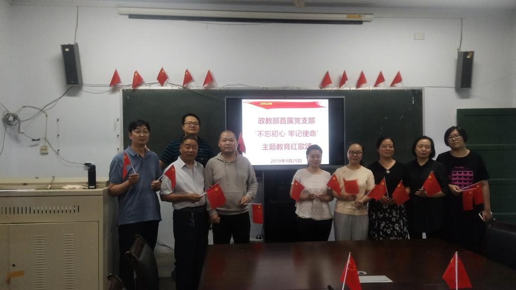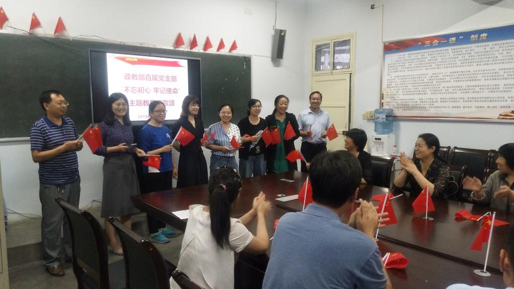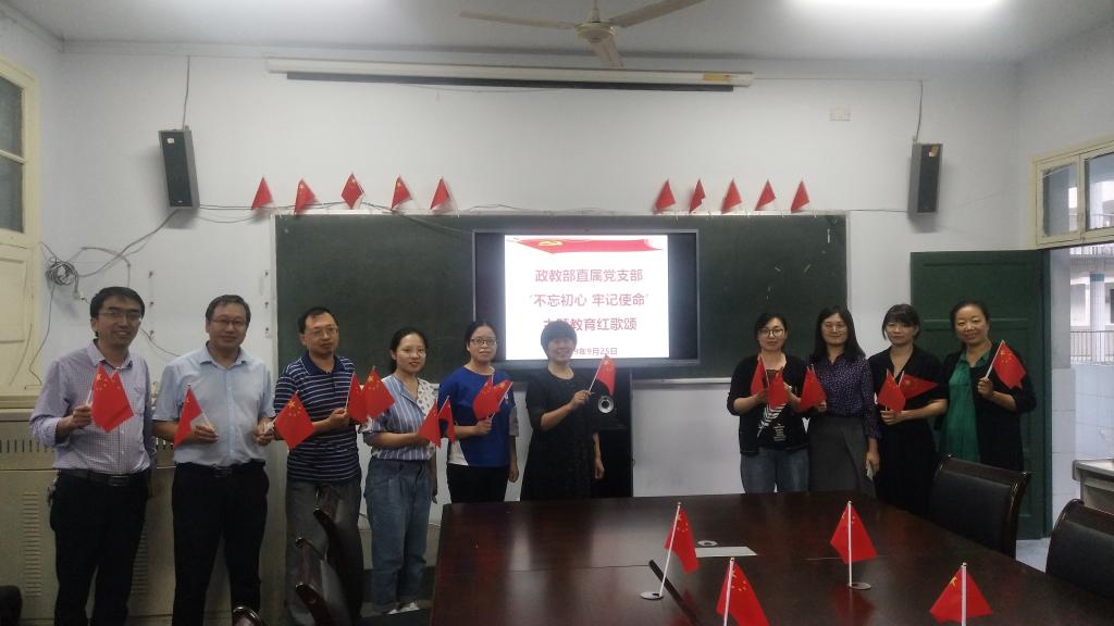 为迎接新中国成立70周年,深入开展“不忘初心、牢记使命”主题教育,进一步加强我校思政课教师队伍建设,提升思政课教师的集体荣誉感、获得感、幸福感,多方面展现思政课教师风采,政教部直属党支部组织开展了“喜迎中华人民共和国成立70周年红歌颂”。9月25日下午5点,政教部在部会议室组织全体思政课教师开展了“喜迎中华人民共和国成立70周年红歌颂”决赛,冯晓青主持活动,全体思政课教师参加活动。