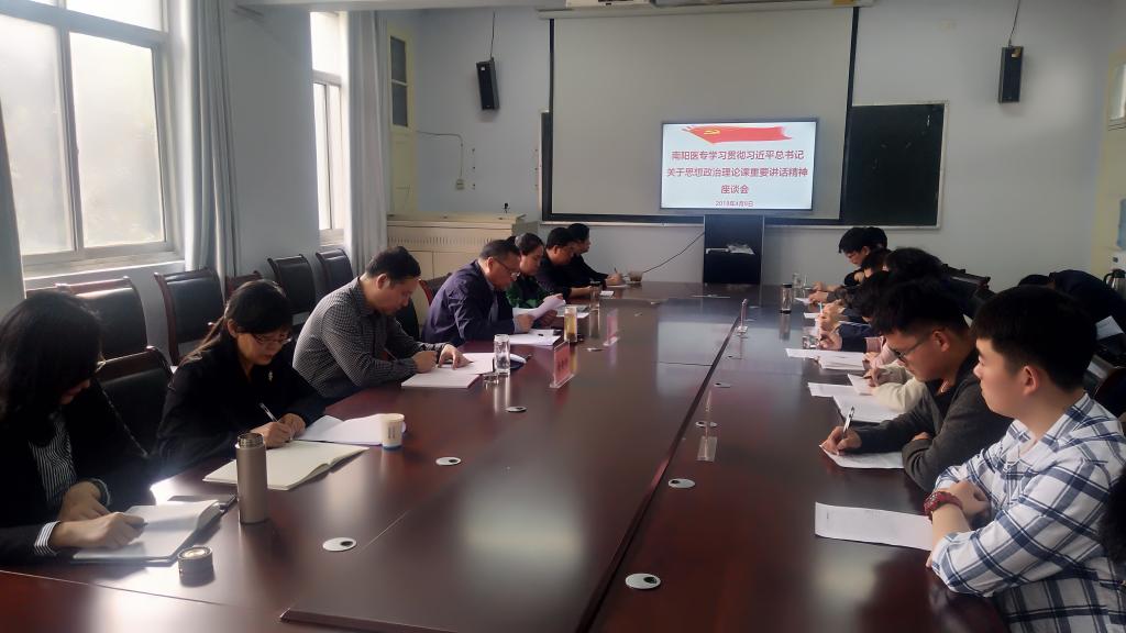 4月8日下午,南阳医专组织召开了学习贯彻习近平总书记关于思想政治理论课重要讲话精神专题座谈会。校党委书记全新明出席,校党委办公室、党委组织部、党委宣传部、团委、学工部、教务处等部门领导和政教部教师代表、涉学系院学生代表共计30余人参加。校党委副书记逵应坤主持会议。