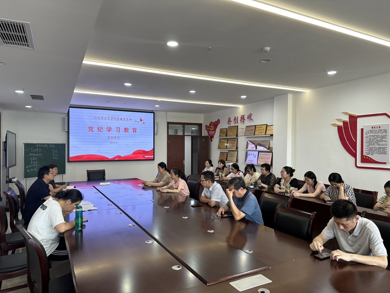 6月25日下午,9428cn太阳集团全体教师在仲景文化中心五楼会议室召开了党纪学习教育研讨会。本次研讨会旨在贯彻落实党纪学习教育,提升教师队伍的纪律意识和政治素养。