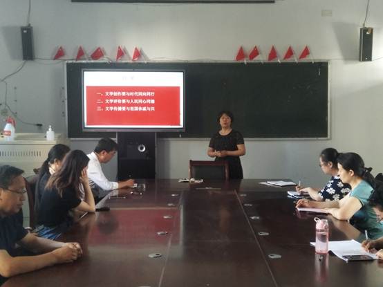 为深入学习贯彻习近平新时代中国特色社会主义思想,巩固拓展 “不忘初心、牢记使命”主题教育成果,根据河南省委组织部下发的《“党课开讲啦”活动工作方案》精神和市委组织部要求,结合实际,6月3日下午,政教部直属党支部组织全体党员教师开展了以“正确理解新时代文学的作用”为题的党课,全体党员教师参加,政教部直属党支部书记冯晓青讲党课。