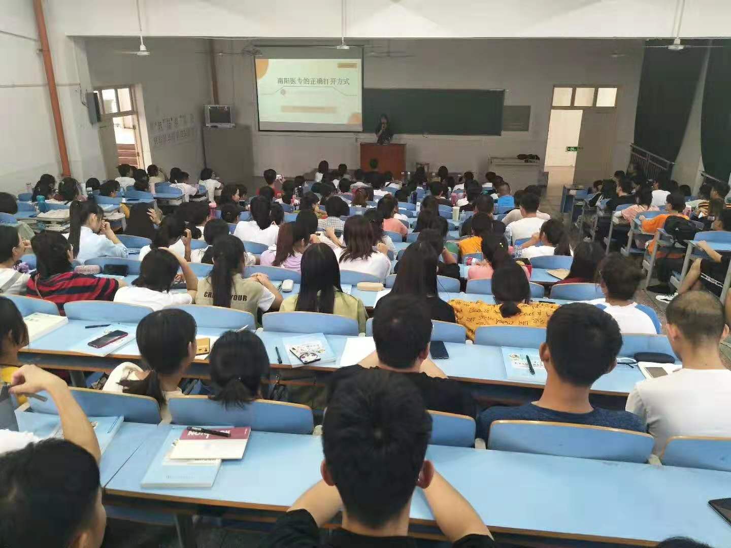 为了帮助我校新生尽快适应大学的学习和生活,同时引导同学们树立在专业方面继续深造的信心,9月3日,我校政教部领航就业创业工作室在仲景西区四号教学楼301成功举办了主题为“南阳医专的正确打开方式------学长学姐给新生的校园攻略”的讲座(交流会),本次讲座我们邀请到了16级国教护理专业的卜凡、17级临床专业郑屹轩、17级国教口腔专业田格三位同学。讲座由政教部袁欣老师主持,三位同学轮流做了精彩发言。