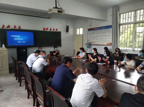 为贯彻好教育部《新时代高等学校思想政治理论课教师队伍建设规定》(第46号令),落实好我校《关于加强思想政治理论课教师队伍建设的实施意见》文件精神,进一步加强我校思政课教师师德师风建设,5月27日下午3:00,政教部邀请我校教务处处长刘荣志教授到部做专题讲座,政教部主任冯晓青主持,全体思政课教师参加。