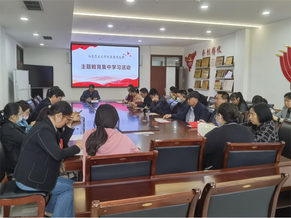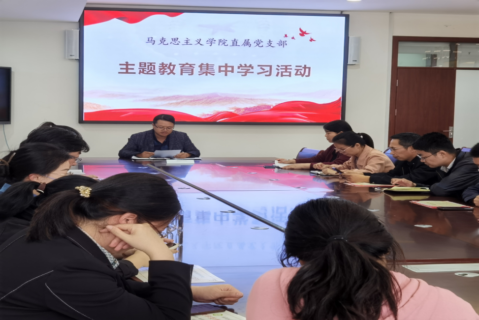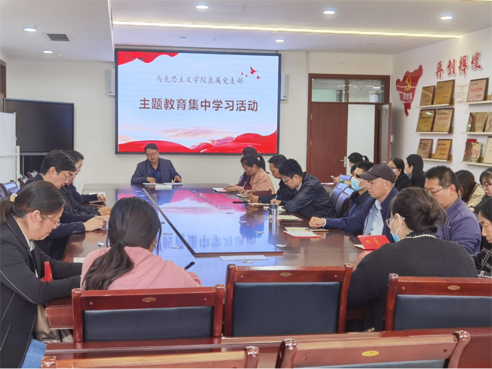 根据学校《在全校党员中深入开展学习贯彻习近平新时代中国特色社会主义思想主题教育的实施方案》文件要求,9428cn太阳集团直属党支部紧紧围绕“学思想、强党性、重实践、建新功”的总要求,牢牢把握深入学习贯彻习近平新时代中国特色社会主义思想这一主题主线和根本任务,认真做到“六个坚持”,抓实理论学习。10月25日下午,9428cn太阳集团直属党支部组织全体党员教师在马院会议室开展主题教育专题学习,支部书记雷雨泰主讲。